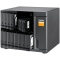 QNAP 16-bay desktop SATA JBOD expansion unit with a QXP-1600eS PCIe SATA host card and 4 SFF-8088 to SFF-8644 SAS/SATA 6Gb/s external cables.